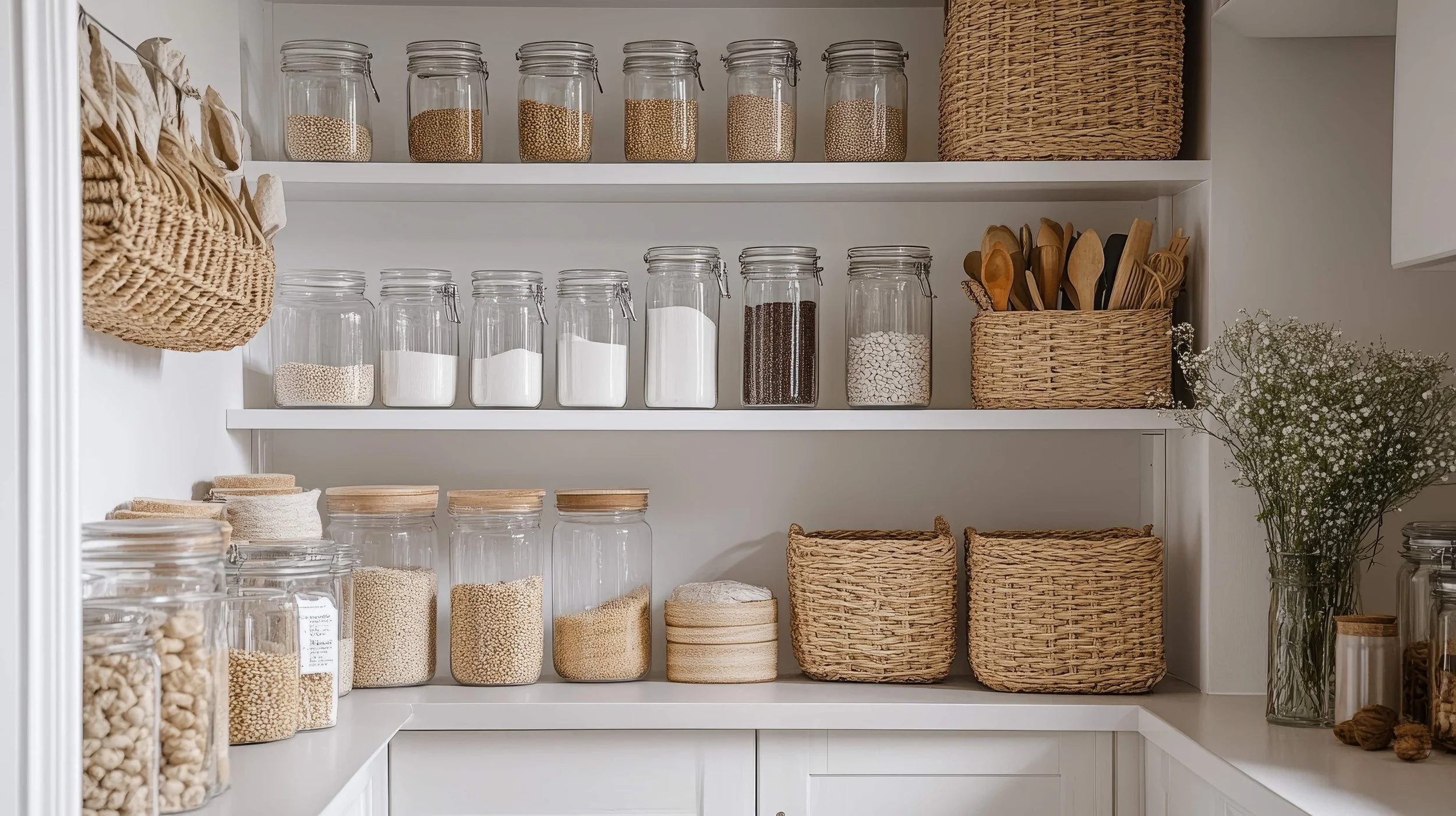 Clear bins, jars, lazy Susan’s, racks, drawer dividers, liners, labels and lighting….